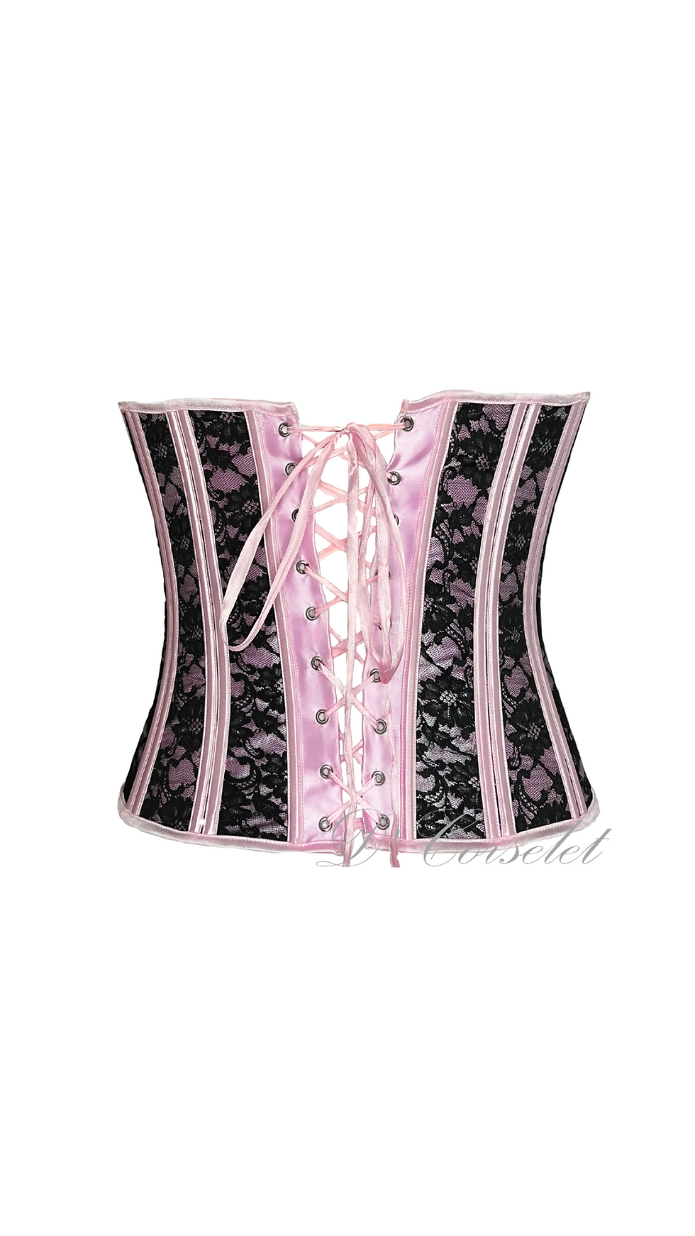 F1892 Black Waist Patch Pink Satin Corset
